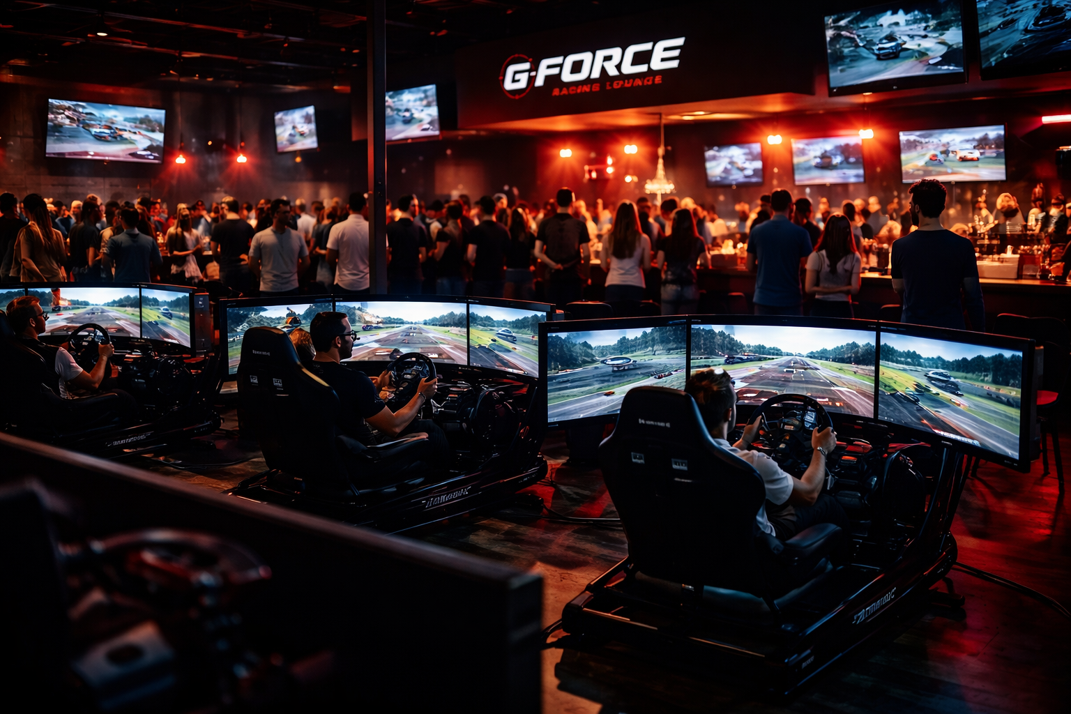 G-Force Racing Lounge attracts passionate motorsport fans, competitive gamers, and corporate groups looking for a unique entertainment experience in downtown Westfield.